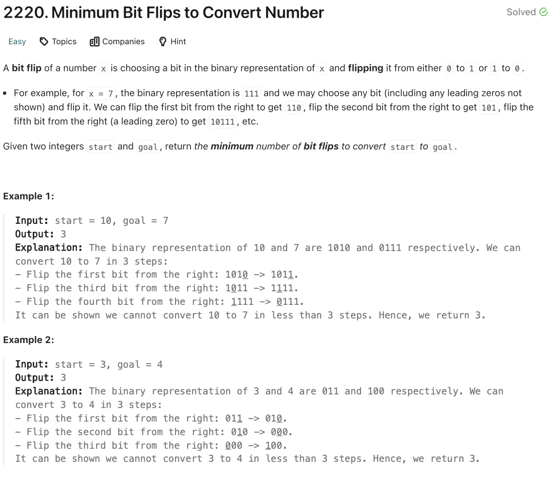 📌 LeetCode [2220]: Minimum Bit Flips to Convert Number