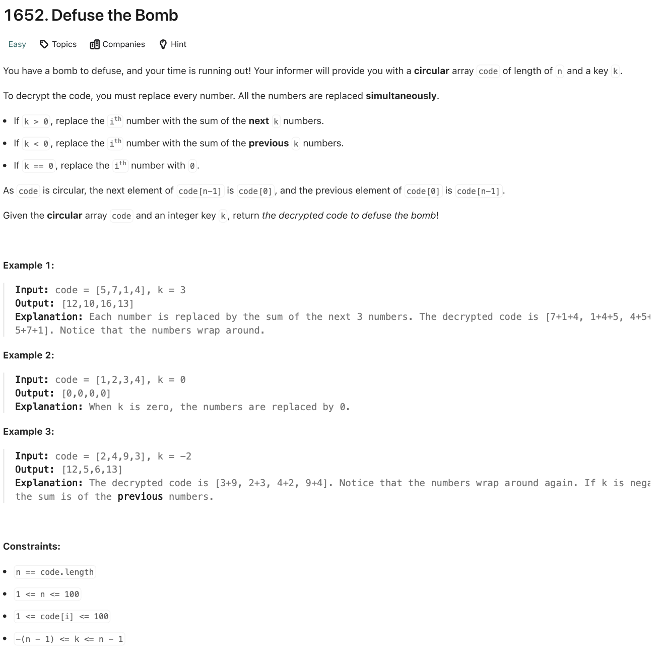 📌 LeetCode [1652]: Defuse the Bomb