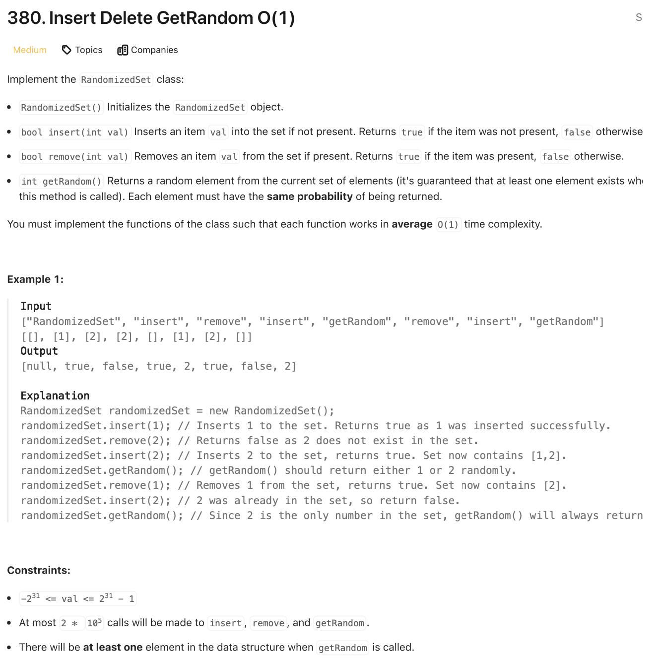 📌 LeetCode [380]: Insert Delete GetRandom O(1)