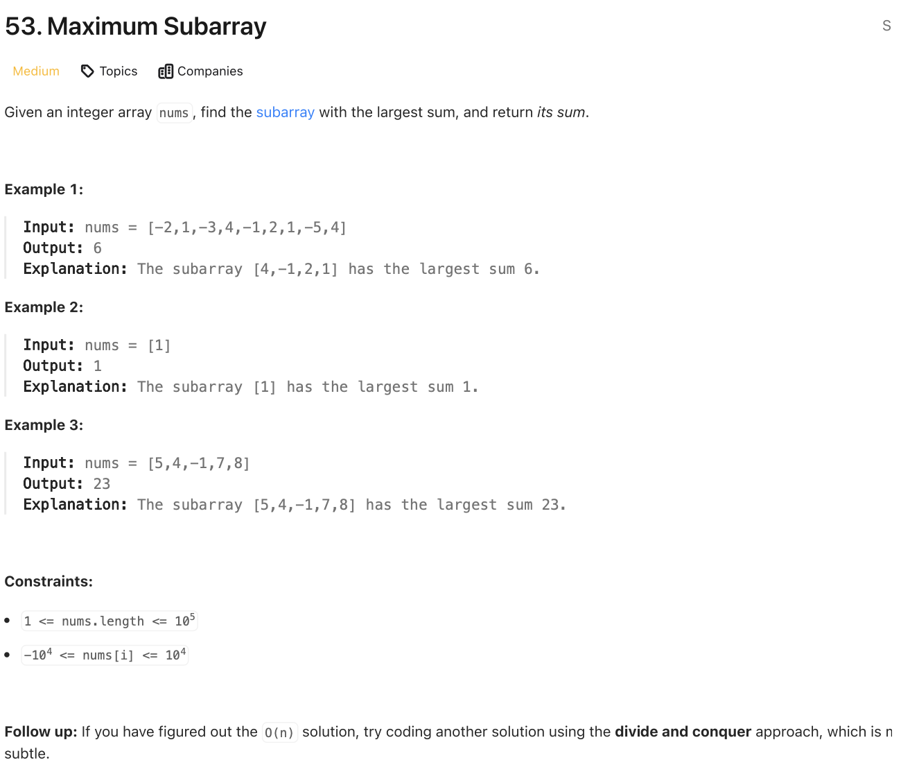 📌 LeetCode [53]: Maximum Subarray