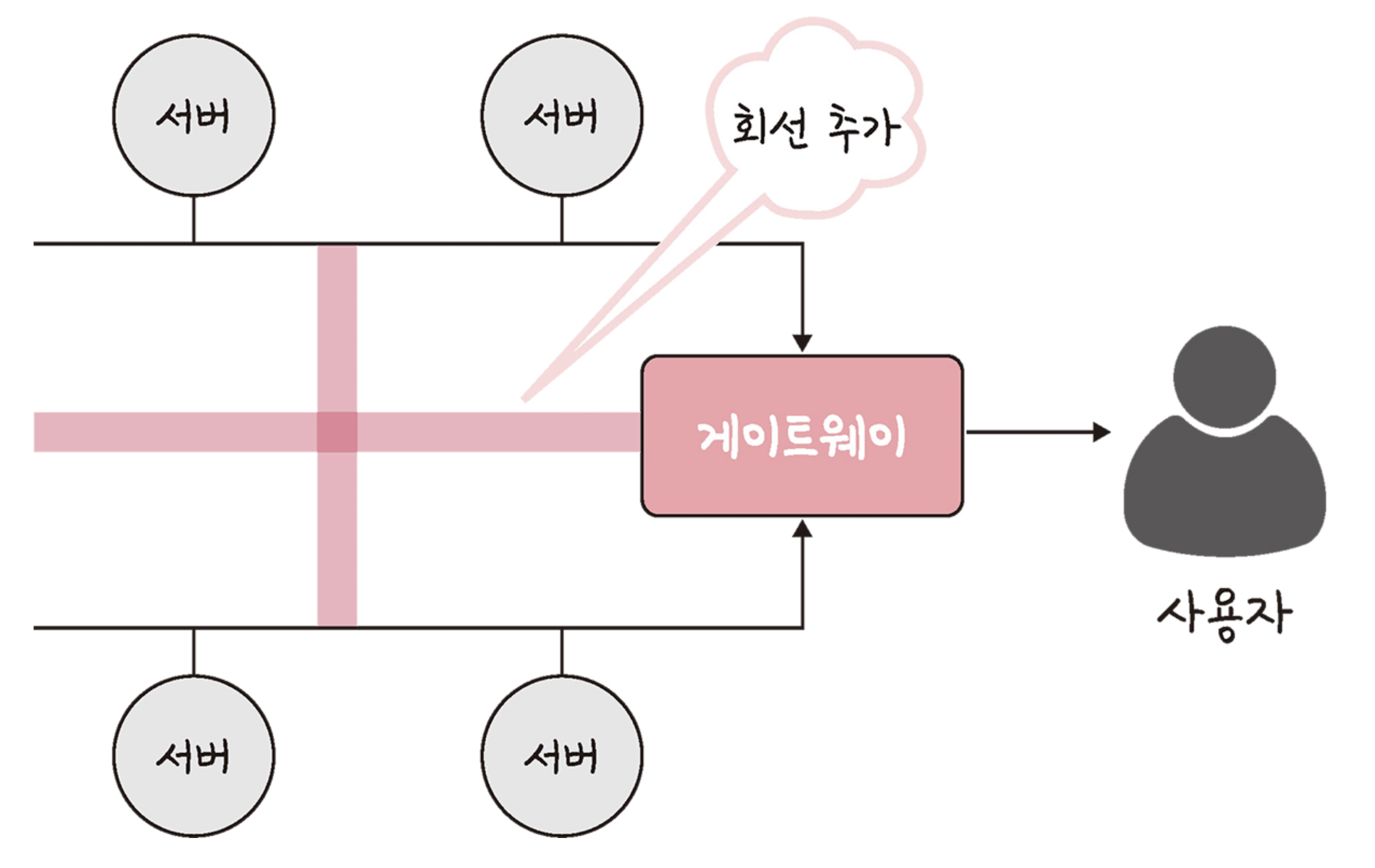 이러한 구조를 개선 시키기 위해선 여러개의 추가 회선을 설치해 병목지점을 개선시킨 모습이다.