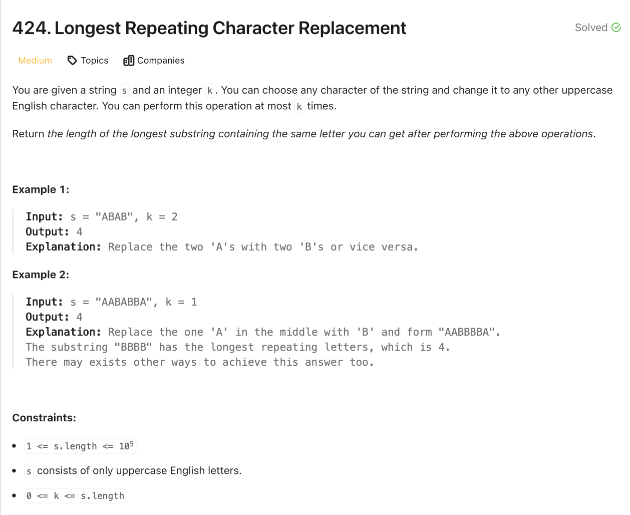 📌 LeetCode [424]: Longest Repeating Character Replacement