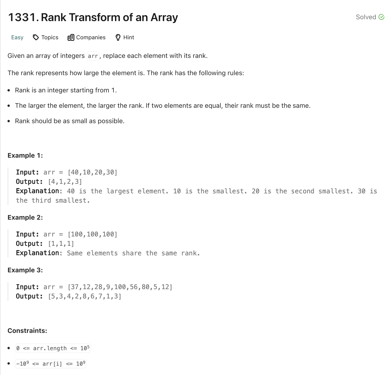 def arrayRankTransform(self, arr: List[int]) -> List[int]: