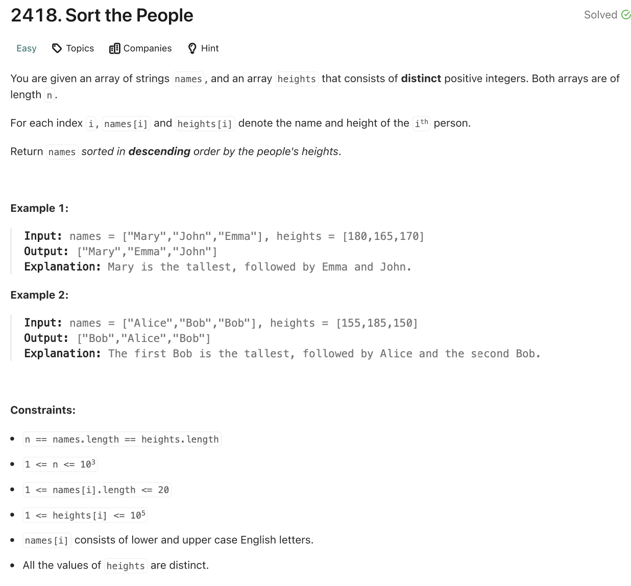 📌 LeetCode [2418]: Sort the People