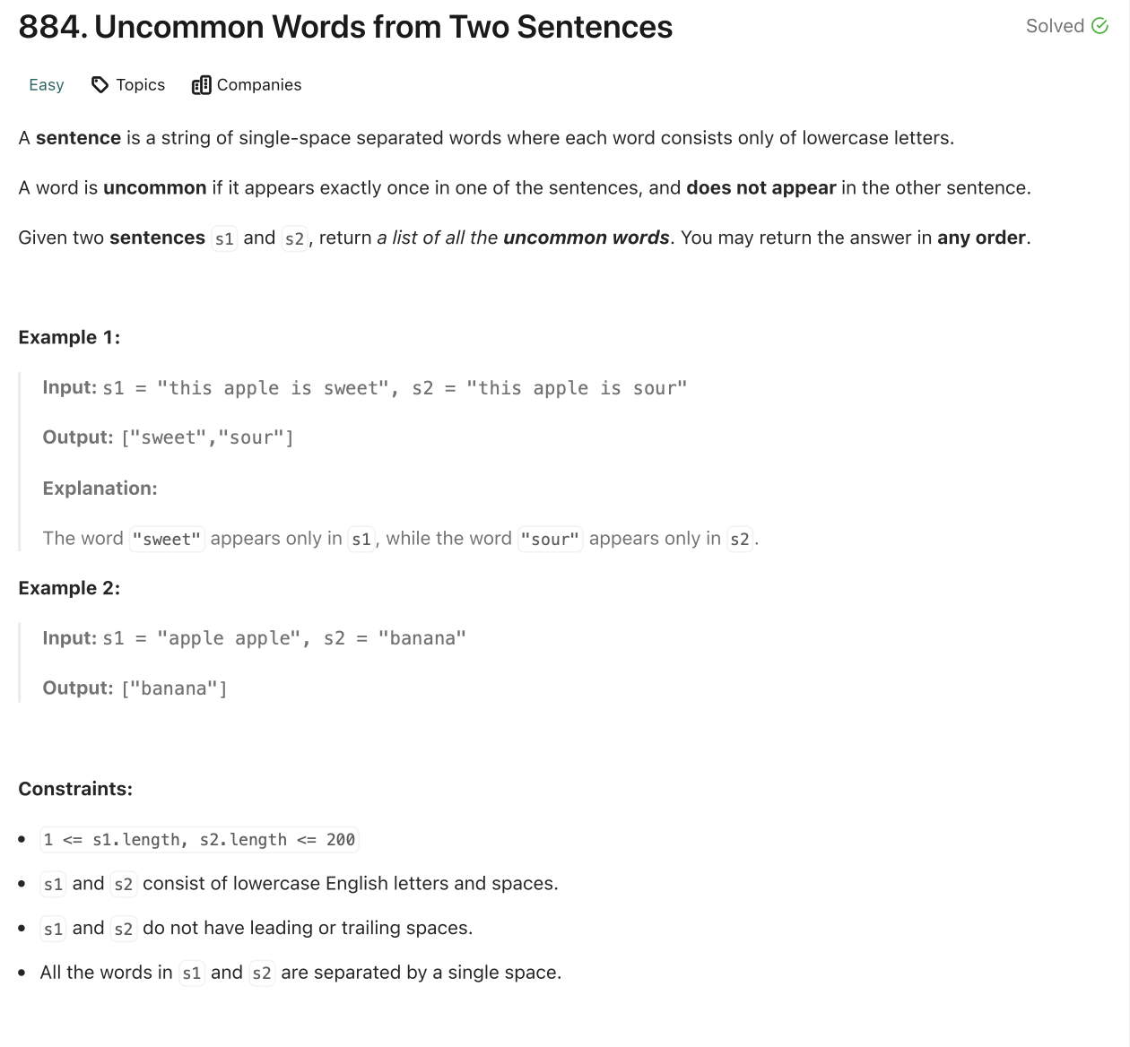 📌 LeetCode [884]: Uncommon Words from Two Sentences