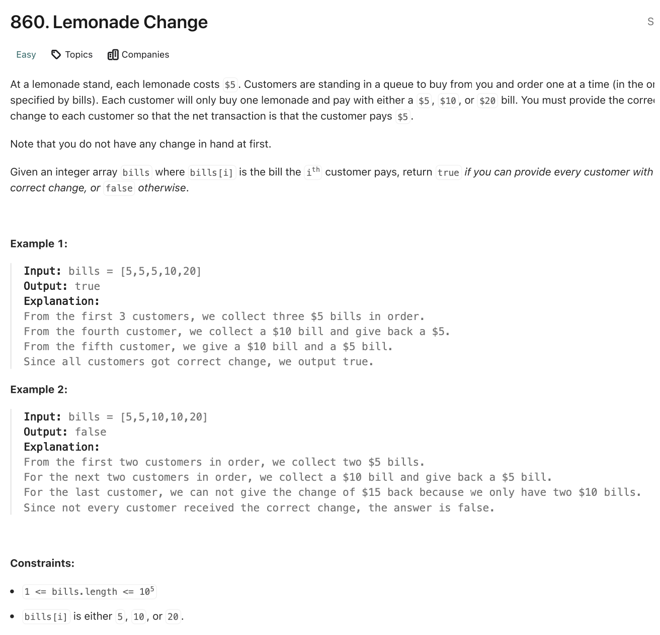 📌 LeetCode [860]: Lemonade Change