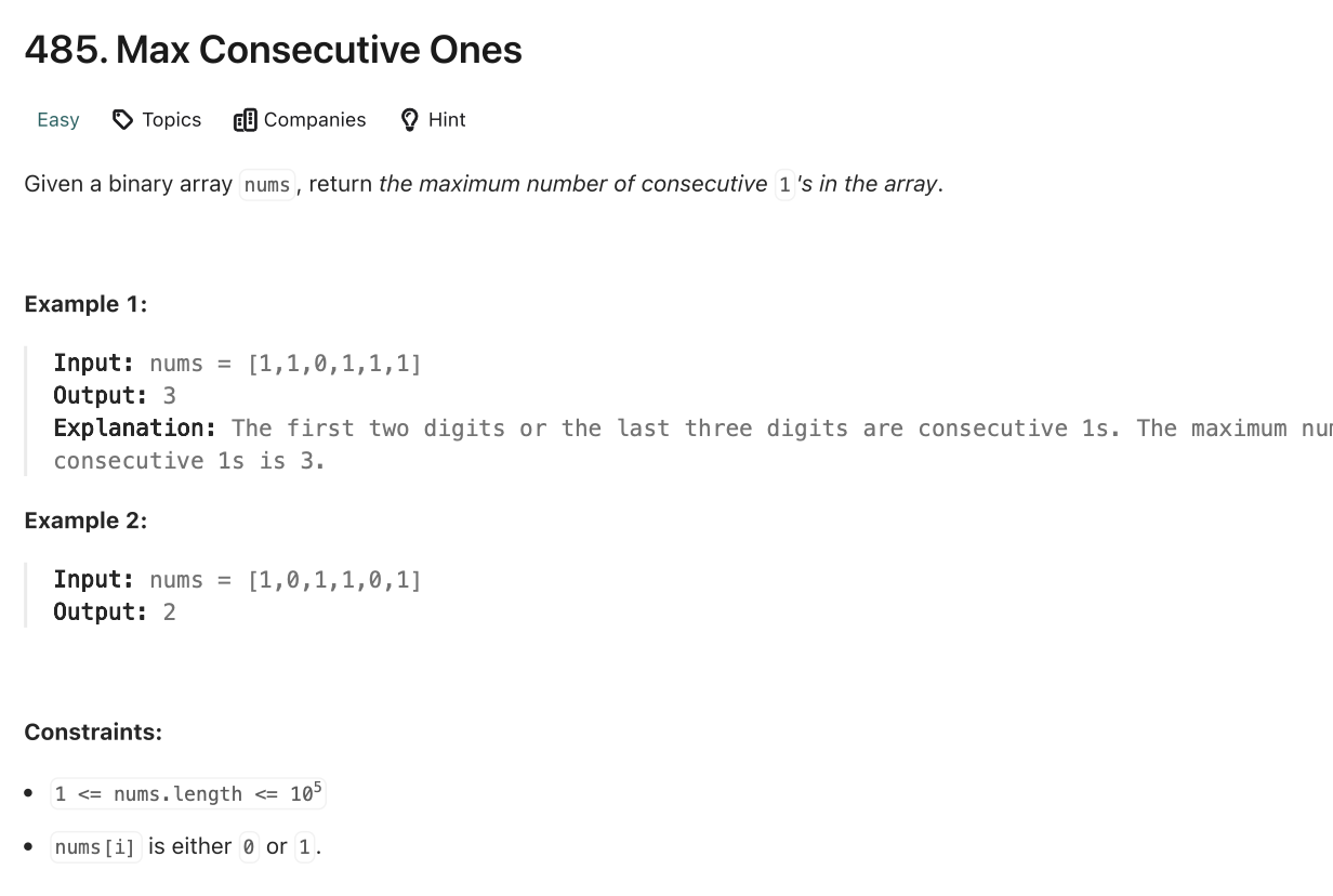 📌 LeetCode [485]: Max Consecutive Ones