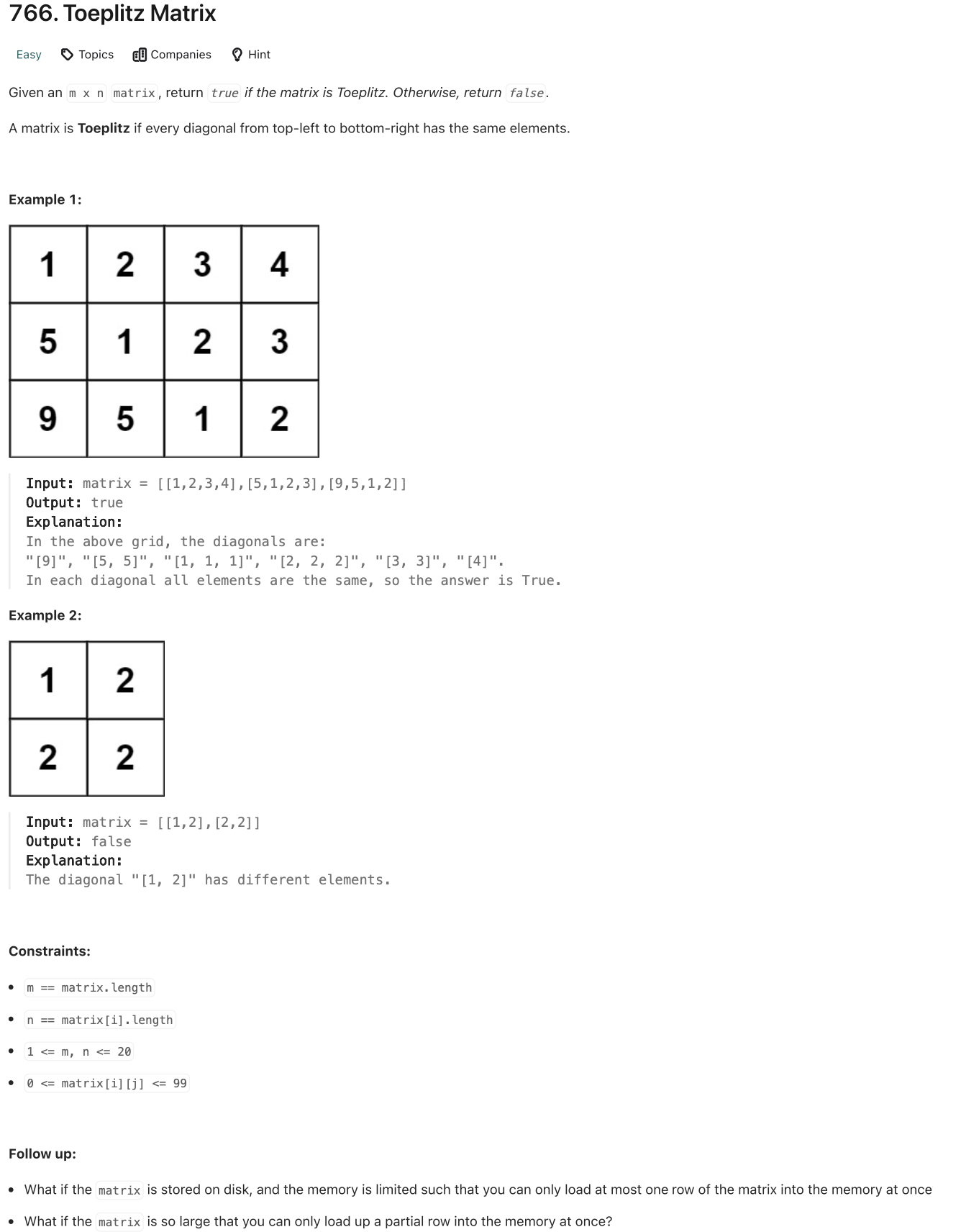 def isToeplitzMatrix(self, matrix: List[List[int]]) -> bool: