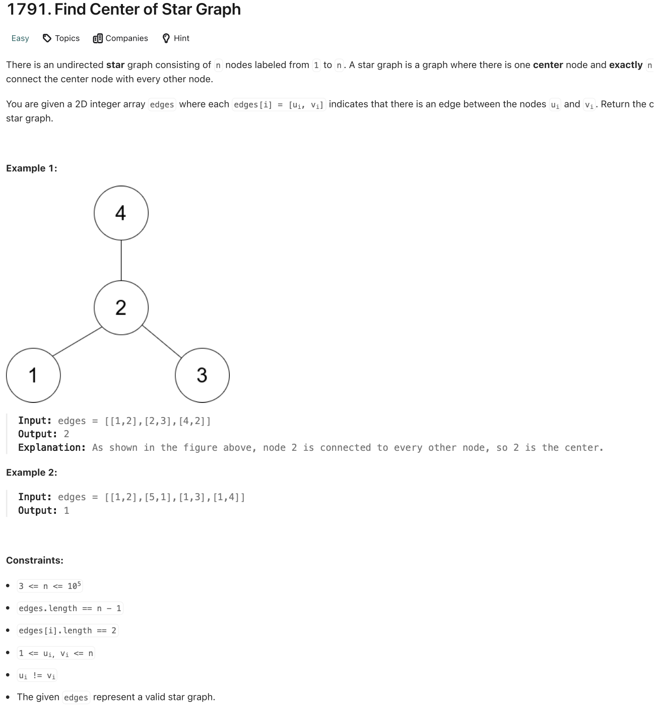 edges가 주어질 때, Star Graph의 중심 노드를 반환하세요.